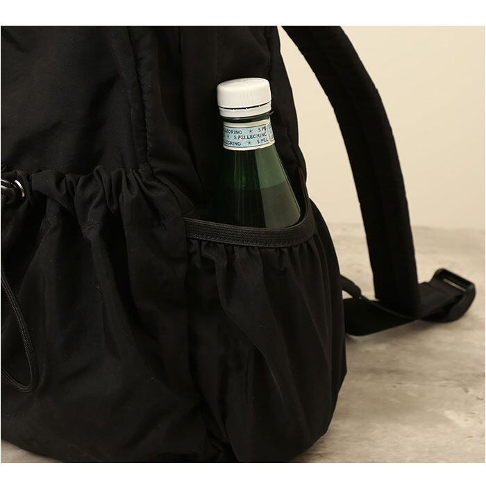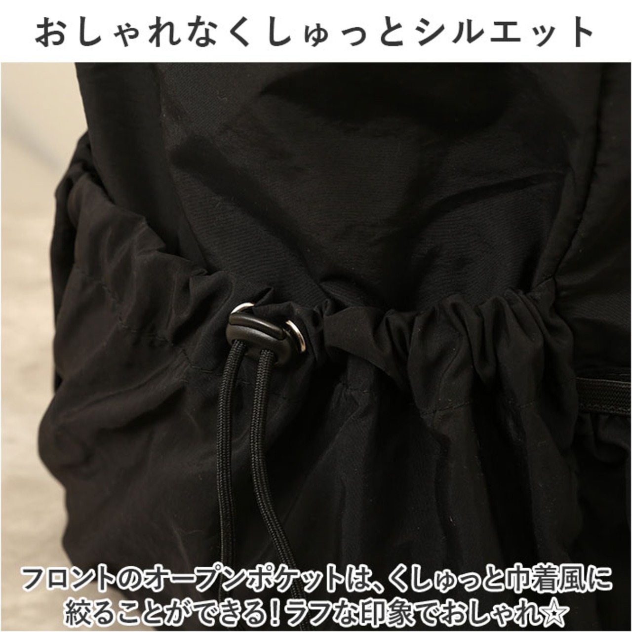 ・フロントのオープンポケットは、くしゅっと巾着風に絞ることができる!ラフな印象でおしゃれ☆