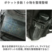 ・魅せる収納を叶えるメッシュポケット、サイドなど多数ポケットを搭載。荷物を整理整頓できる◎