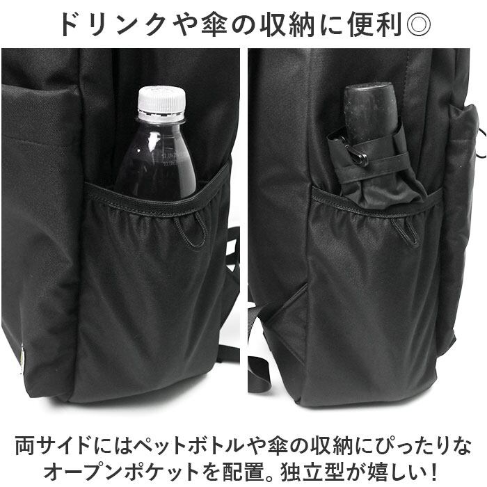 ・両サイドにはペットボトルや傘の収納にぴったりなオープンポケットを配置。独立型が嬉しい!