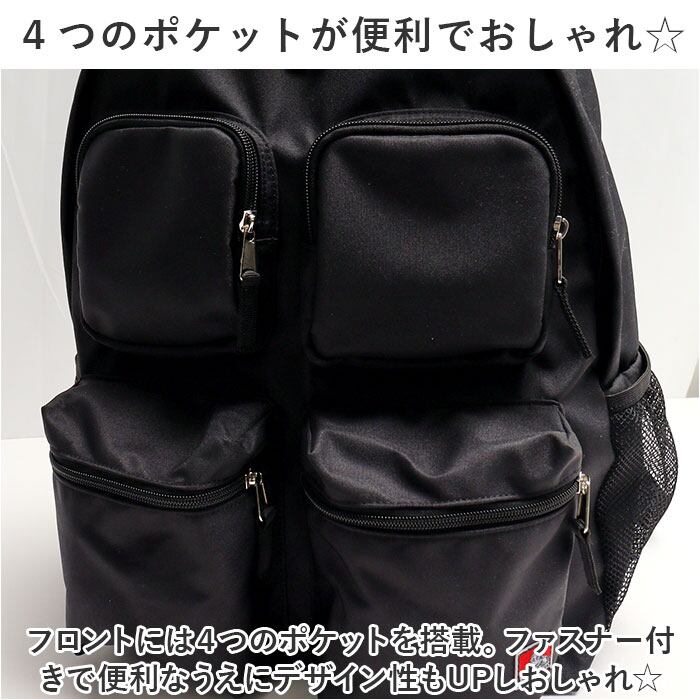 ・フロントには4つのポケットを搭載。ファスナー付きで便利なうえにデザイン性もUPしおしゃれ☆