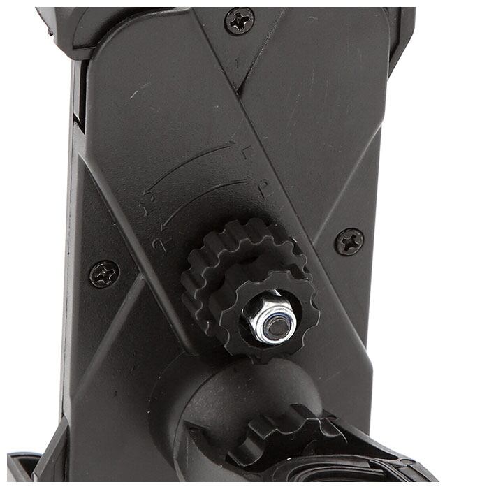 ・ホルダー裏側の調節ネジで、お手持ちのスマホサイズにぴったりセッティング。3.5インチから7インチのスマホまで幅広く対応。