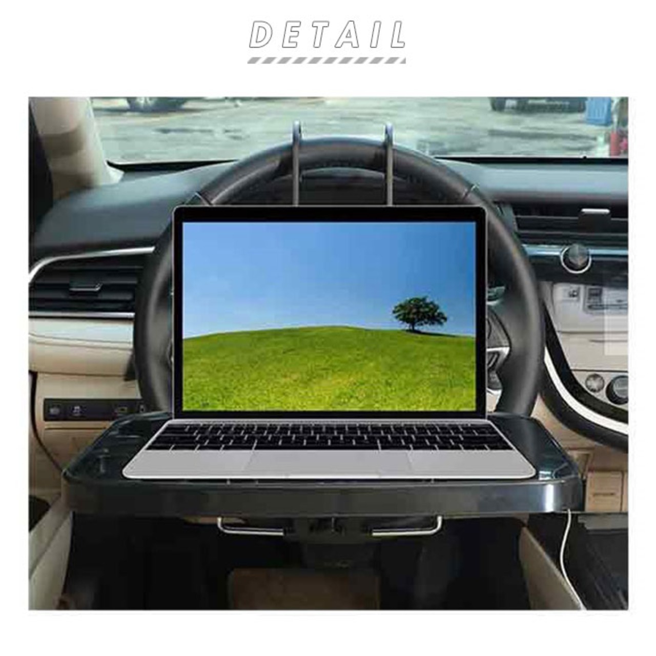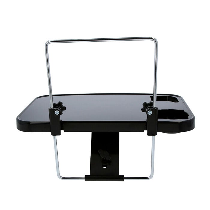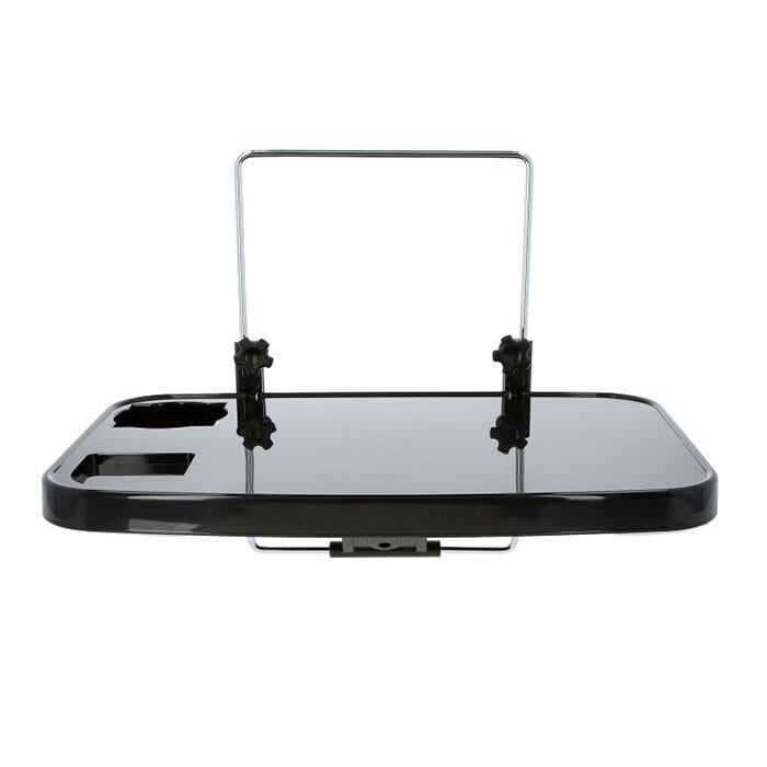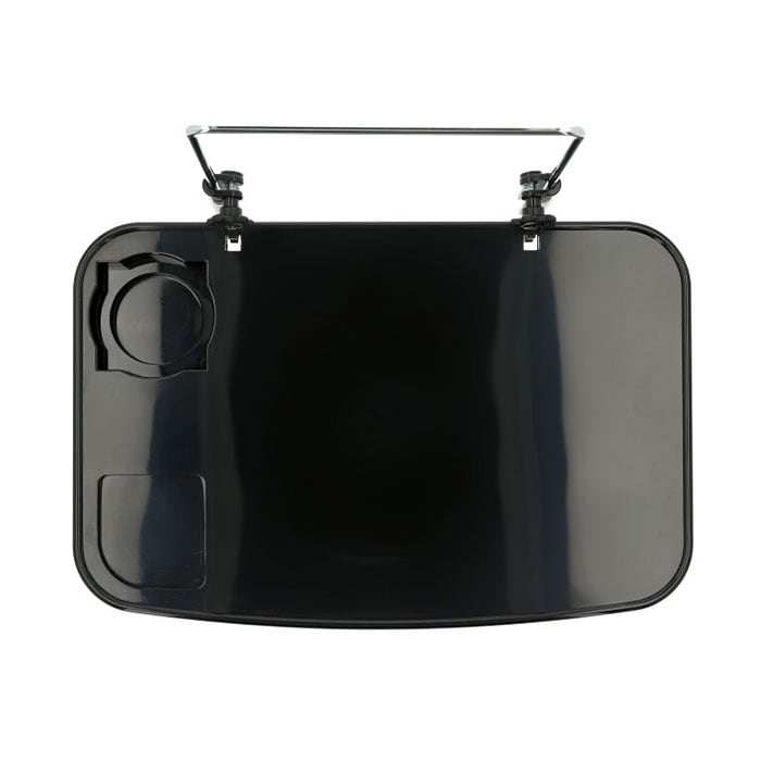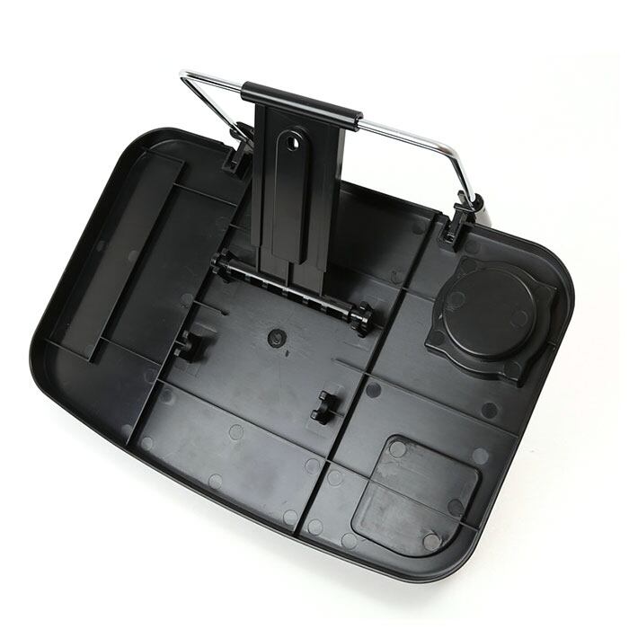 ・付属のフックを使って車のハンドルやヘッドレストに取り付けることで、簡易デスクになる多目的トレイ。