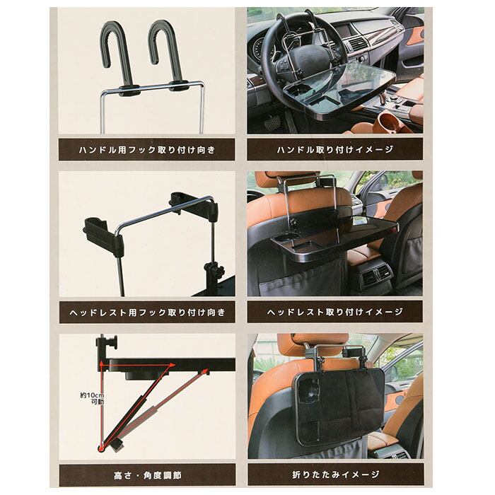 車載用 テーブル 通販 多目的トレイ トレイ 車載用多目的トレイ ノートpc トレー カー用品 ハンドル ヘッドレスト フック 折りたたみ 車用 車 便利グッズ 雑貨 おでかけ