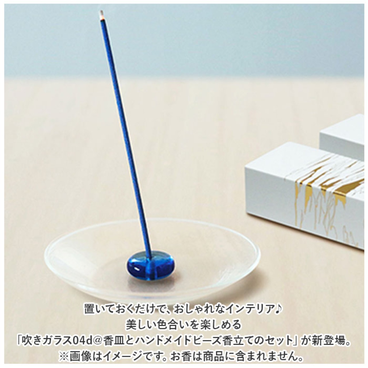 ・置いておくだけで、おしゃれなインテリア♪美しい色合いを楽しめる「吹きガラス香皿とハンドメイドビーズ香立てのセット」が新登場。