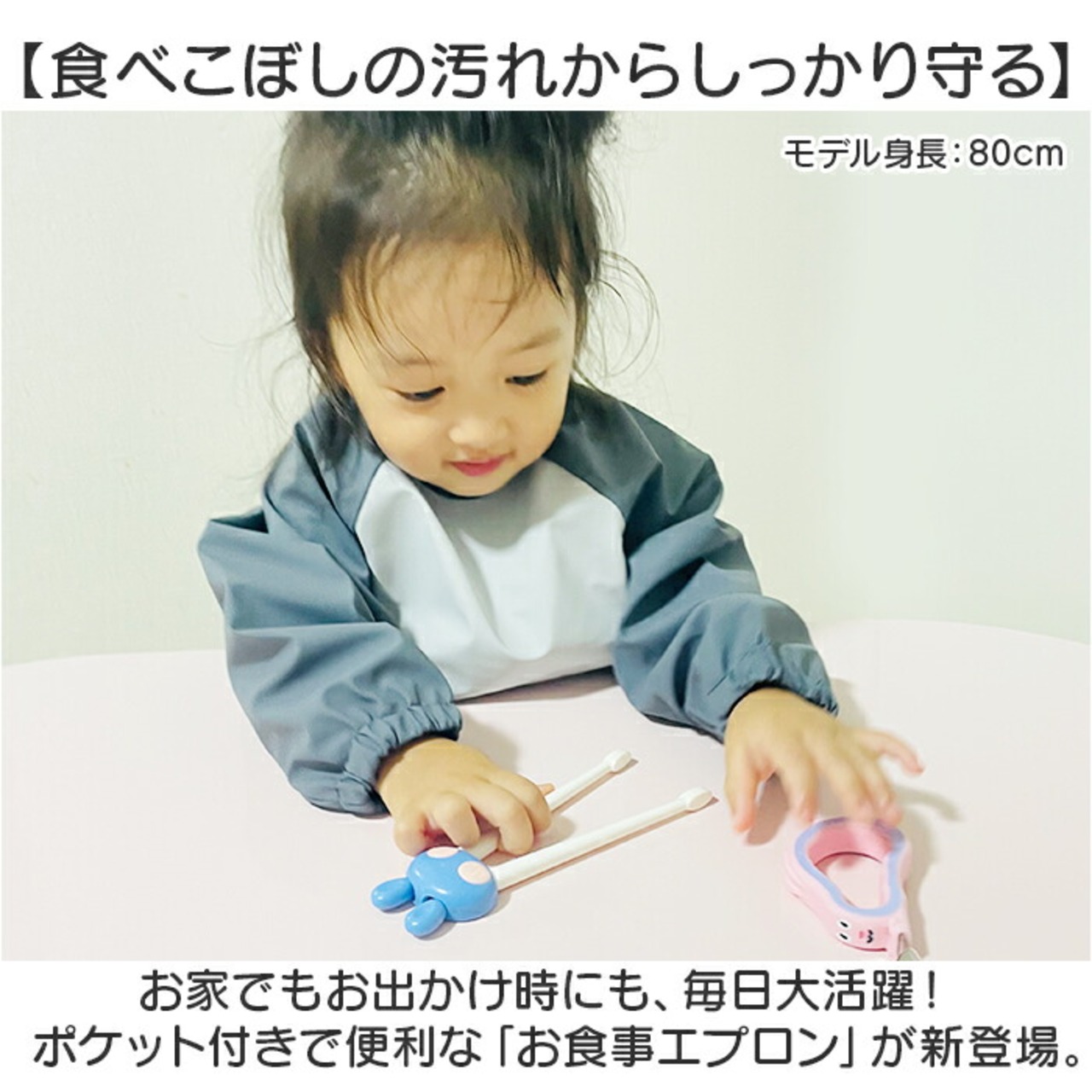 ・お家でもお出かけ時にも、毎日大活躍!ポケット付きで便利な「お食事エプロン」が新登場。