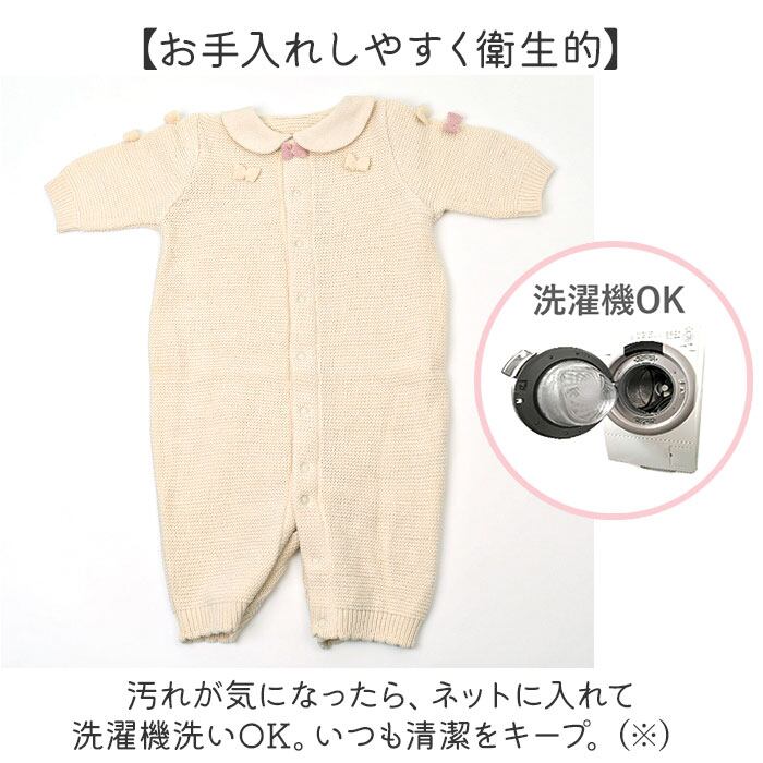 ・新生児の時はドレス型、脚の動きが活発になったらカバーオール型にチェンジ。