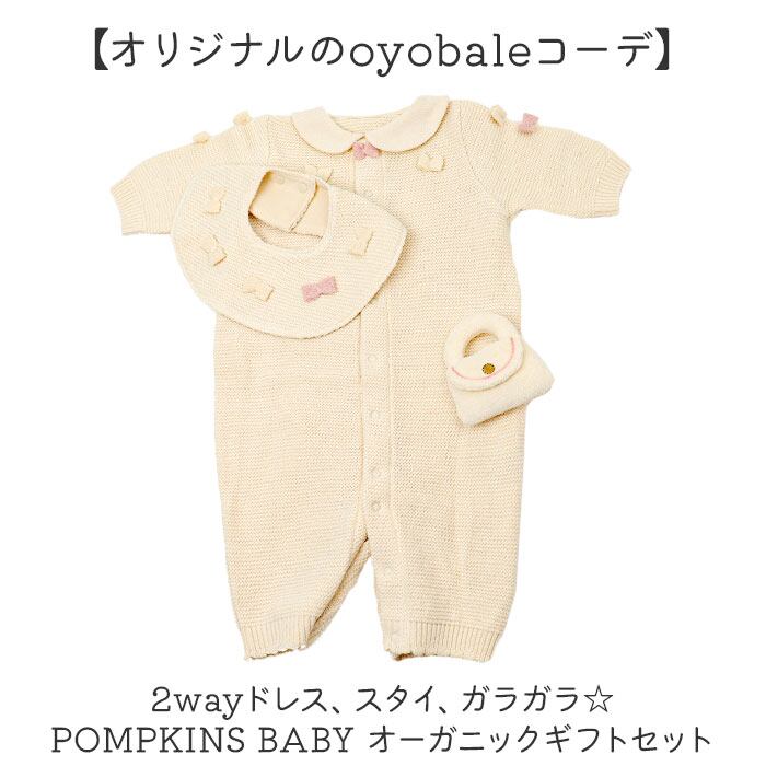 ・2wayドレス、スタイ、ガラガラ☆POMPKINS BABY オーガニックギフトセット
