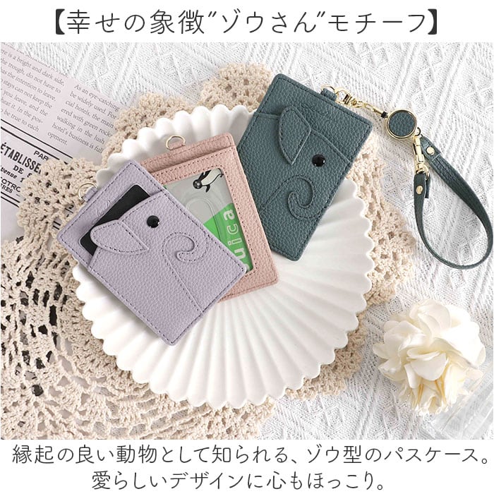 ・縁起の良い動物として知られる、ゾウ型のパスケース。愛らしいデザインに心もほっこり。