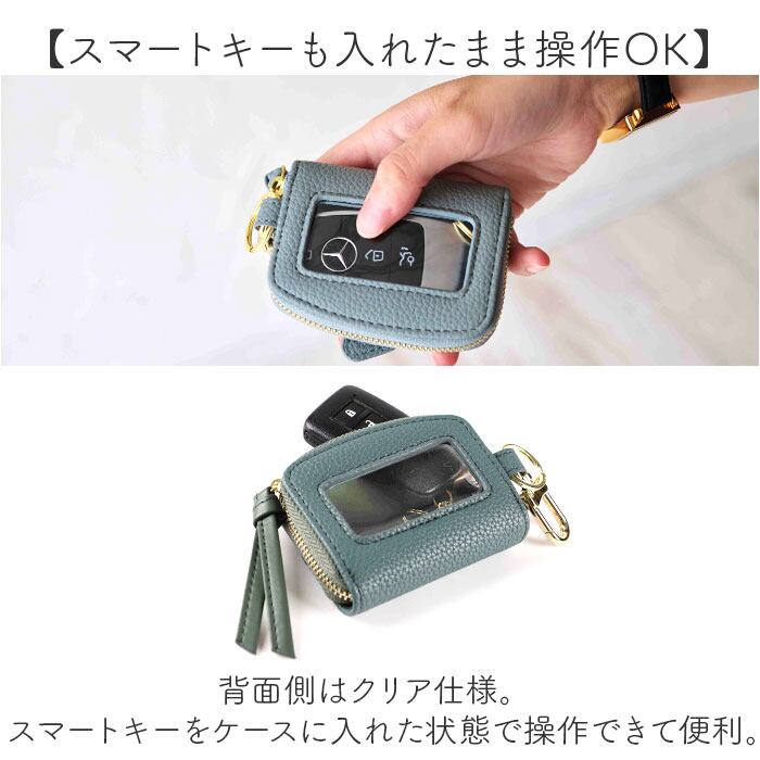 ・背面側はクリア仕様。スマートキーをケースに入れた状態で操作できて便利。