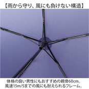 ・体格の良い男性にもおすすめの親骨60cm。風速15m/Sまでの風にも耐えられるフレーム。