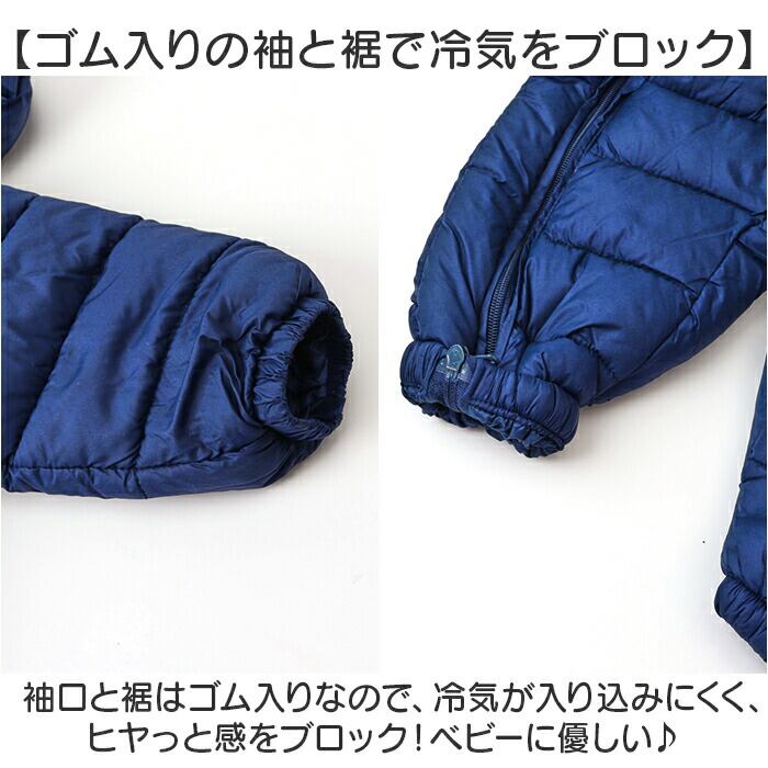 ・袖口と裾はゴム入りなので、冷気が入り込みにくく、ヒヤっと感をブロック!ベビーに優しい♪