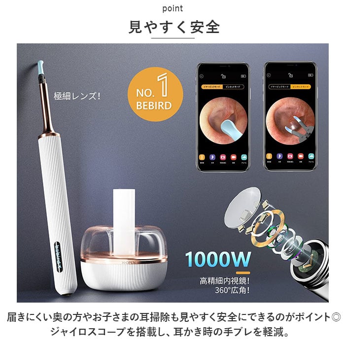 ・届きにくい奥の方やお子さまの耳掃除も見やすく安全にできるのがポイント◎
