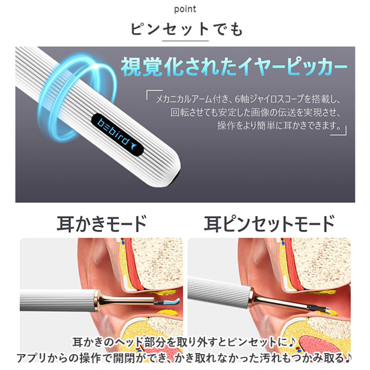 Bebird イヤークリーナー Note3 Pro 通販 耳かき スコープ 耳掃除 カメラ 耳そうじ 耳掻き カメラ付き耳かき イヤースコープ ピンセット 子供 ライト ビーバード 介護 母の日 父の日 敬老の日 ギフト