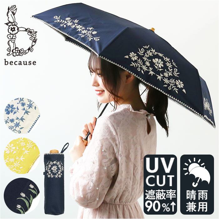 because ビコーズ 晴雨兼用傘 折りたたみ傘 通販 傘 折り畳み傘 雨傘 日傘 折り畳み 折りたたみ 晴雨兼用 UVカット 紫外線対策 紫外線カット 熱中症対策 綿混 レディース デザイン パラソル 通勤 通学 おしゃれ