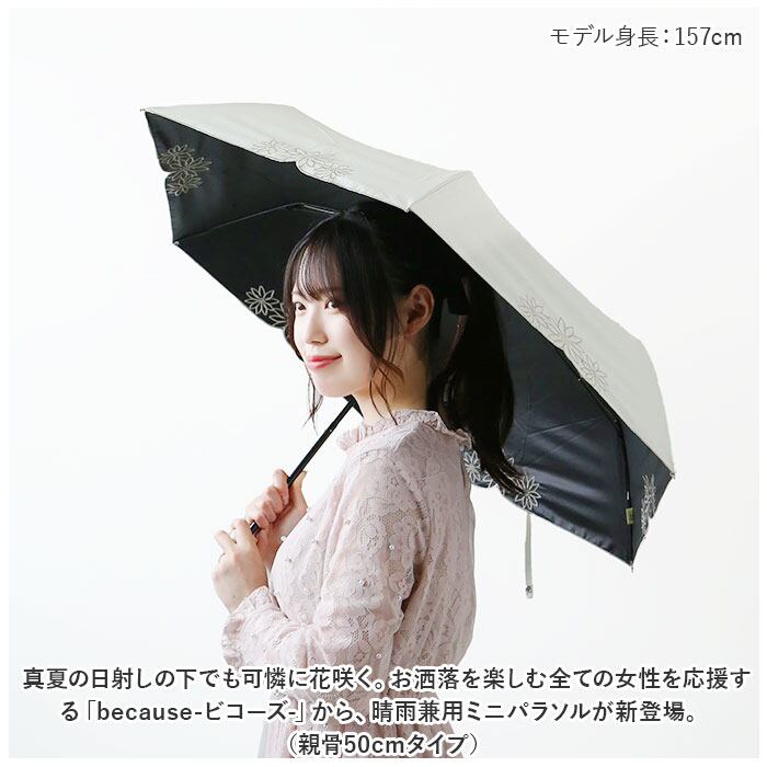 ・真夏の日射しの下でも可憐に花咲く。お洒落を楽しむ全ての女性を応援する「because-ビコーズ-」から、晴雨兼用ミニパラソルが新登場。(親骨50cmタイプ)