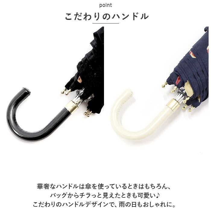 ・華奢なハンドルは傘を使っているときはもちろん、バッグからチラっと見えたときも可愛い♪こだわりのハンドルデザインで、雨の日もおしゃれに。