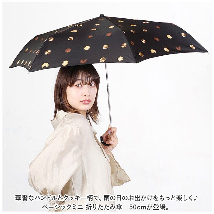 ・華奢なハンドルとクッキー柄で、雨の日のお出かけをもっと楽しく♪ベーシックミニ 折りたたみ傘 50cmが登場。