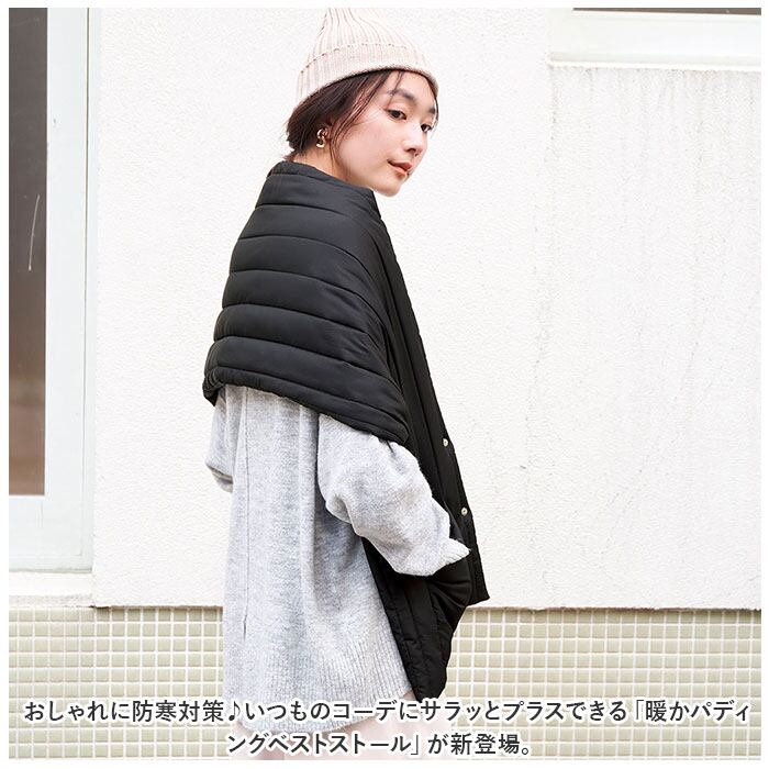 ストール レディース 通販 暖かパディングベストストール ベスト 中綿 肩ウォーマー 肩掛け ポンチョ 温める コジット ルームウェア 部屋着 防寒 秋 冬 あったか ぽかぽか 冷え対策 おしゃれ かわいい 敬老の日 ギフト