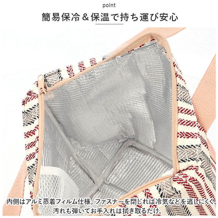 ・メッシュ素材の内ポケットにお手持ちの保冷剤を入れると、保冷効果がアップ!