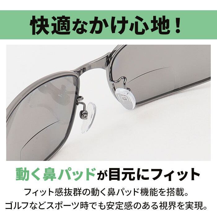 ・フィット感抜群の動く鼻パッド機能を搭載。ゴルフなどスポーツ時でも安定感のある視界を実現。