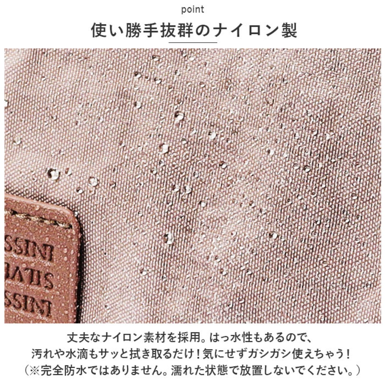 ・丈夫なナイロン素材を採用。はっ水性もあるので、汚れや水滴もサッと拭き取るだけ!気にせずガシガシ使えちゃう!(※完全防水ではありません。濡れた状態で放置しないでください。)