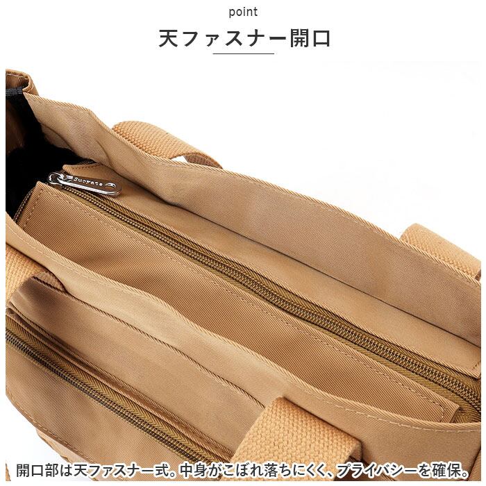 ・開口部は天ファスナー式。中身がこぼれ落ちにくく、プライバシーを確保。