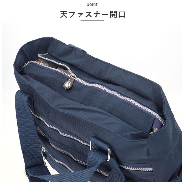 ・開口部は天ファスナー式。中身がこぼれ落ちにくく、プライバシーを確保。