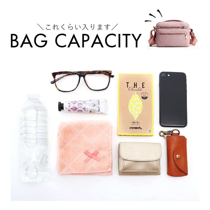 ・手軽に持ち出せるサイズ感ながら、お出かけに必要な小物がしっかり収まる♪両手が空くので、レジャーシーンなどでも活躍!