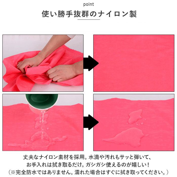 ・丈夫なナイロン素材を採用。水滴や汚れもサッと弾いて、お手入れは拭き取るだけ。ガシガシ使えるのが嬉しい!(※完全防水ではありません。濡れた場合はすぐに拭き取ってください。)
