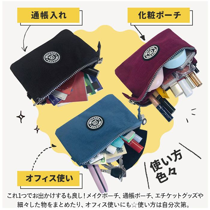 ・これ1つでお出かけするも良し!メイクポーチ、通帳ポーチ、エチケットグッズや細々した物をまとめたり、オフィス使いにも☆使い方は自分次第。
