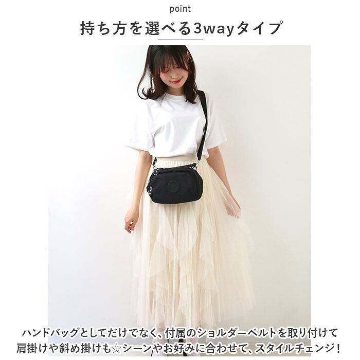 ・ハンドバッグとしてだけでなく、付属のショルダーベルトを取り付けて肩掛けや斜め掛けも☆シーンやお好みに合わせて、スタイルチェンジ!