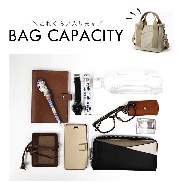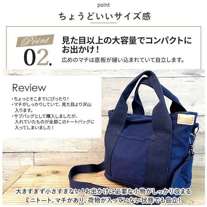 ・大きすぎず小さすぎない!お出かけに必要な小物がしっかり収まるミニトート。マチがあり、荷物が入っていない状態でも自立!