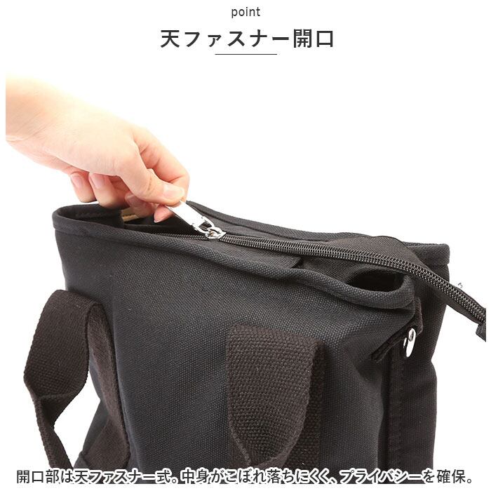 ・開口部は天ファスナー式。中身がこぼれ落ちにくく、プライバシーを確保。
