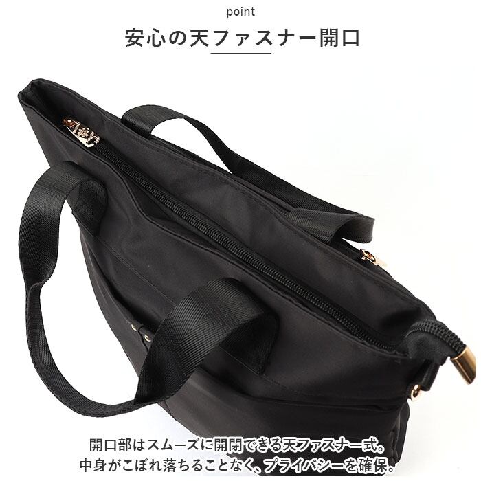 ・開口部はスムーズに開閉できる天ファスナー式。中身がこぼれ落ちることなく、プライバシーを確保。