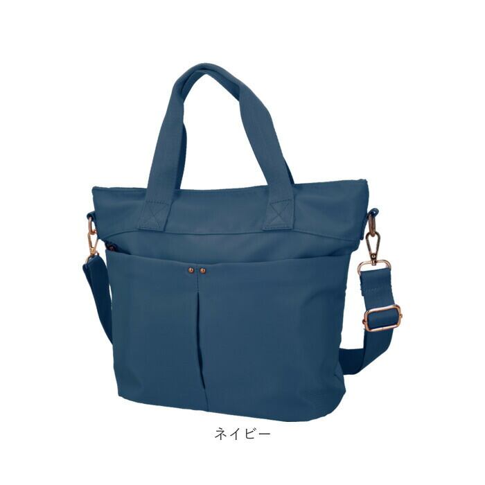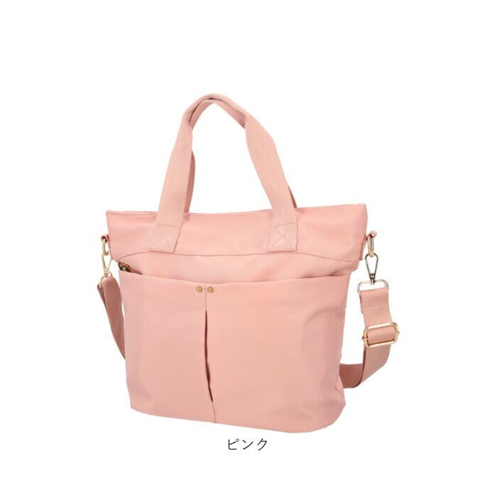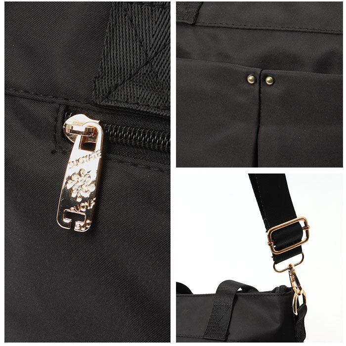 ・デザイン性のあるファスナー引き手や、ゴールドの金具使いがポイント。ハンドルやショルダーベルトはやや光沢があり、バッグと同色で統一感も!