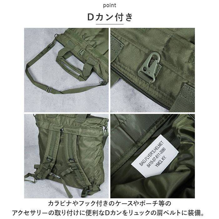 ・カラビナやフック付きのケースやポーチ等のアクセサリーの取り付けに便利なDカンをリュックの肩ベルトに装備。