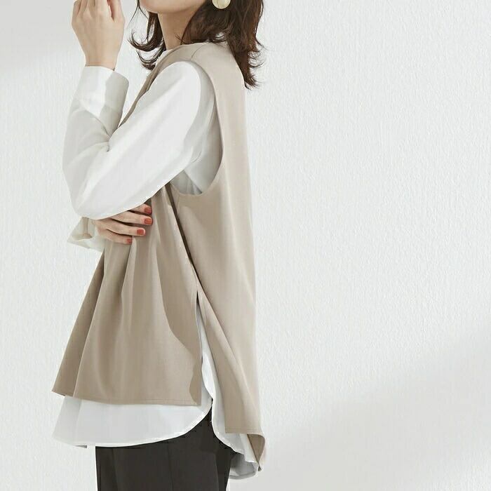 ・マンネリになりがちな着こなしも、カットソーやブラウスに重ねるだけで印象チェンジ!