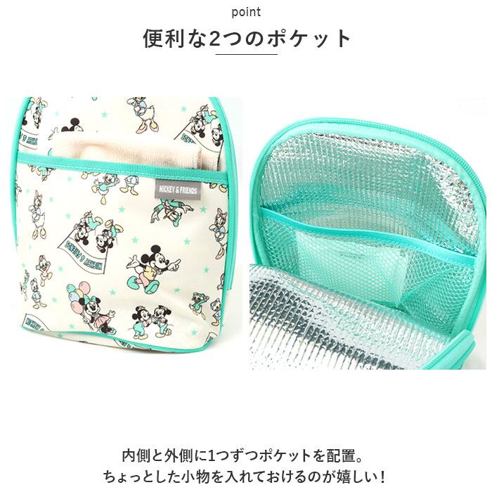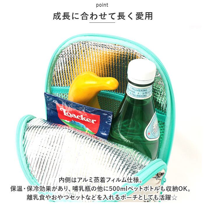 ・内側はアルミ蒸着フィルム仕様。保温・保冷効果があり、哺乳瓶の他に500mlペットボトルも収納OK。離乳食やおやつセットなどを入れるポーチとしても活躍☆