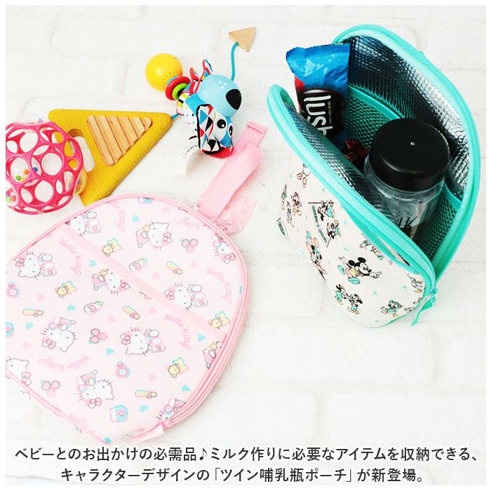 ・ベビーとのお出かけの必需品♪ミルク作りに必要なアイテムを収納できる、キャラクターデザインの「ツイン哺乳瓶ポーチ」が新登場。