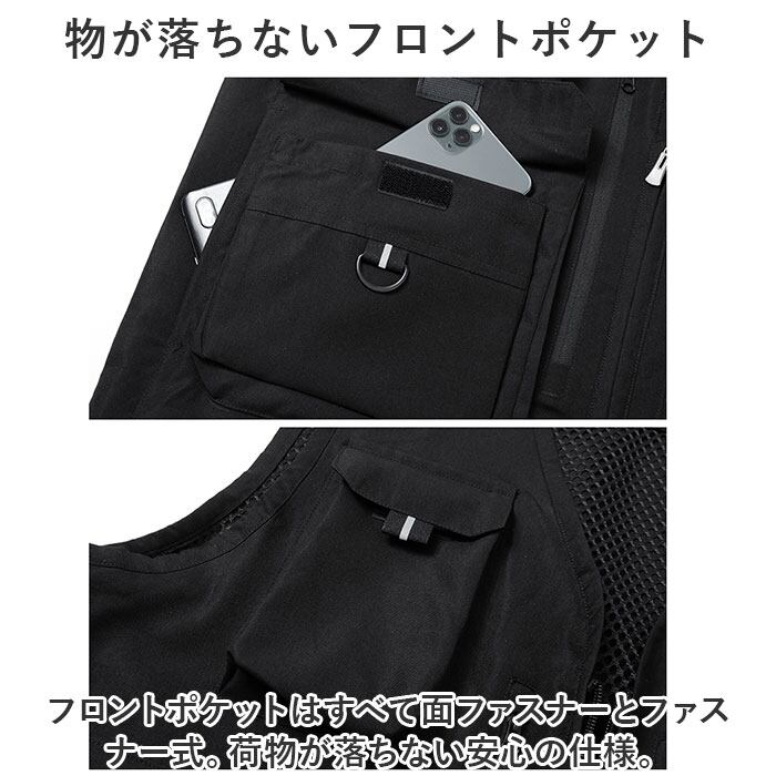・ベストのあらゆるところにポケットを配置。スマホや作業用小物などポケットにINできる!