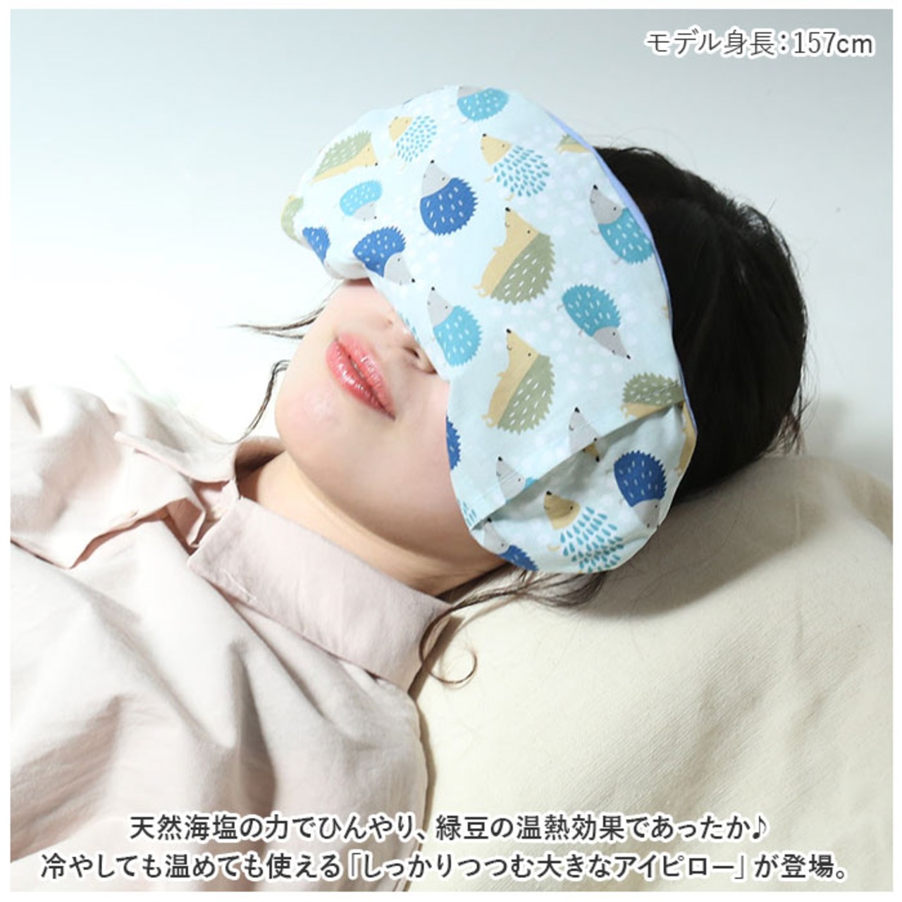 ・天然海塩の力でひんやり、緑豆の温熱効果であったか♪冷やしても温めても使える「しっかりつつむ大きなアイピロー」が登場。