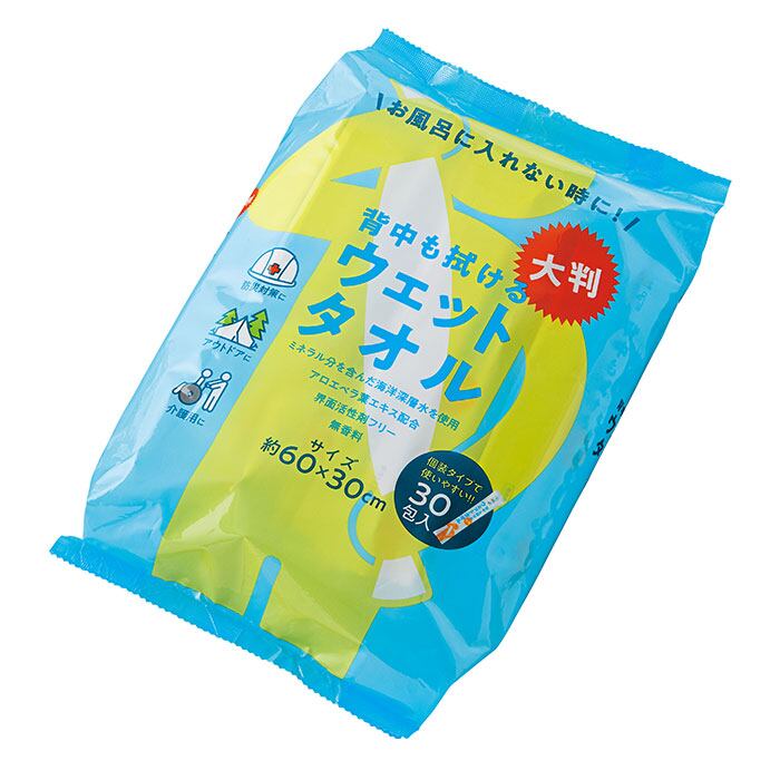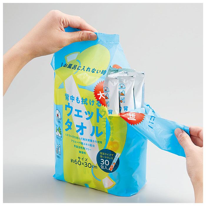 ・お風呂に入れない時は、これ1枚で全身スッキリ!「背中も拭ける大判ウェットタオル」登場。