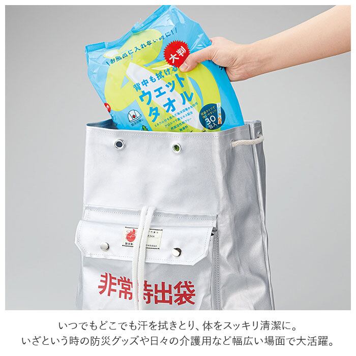 ・いつでもどこでも汗を拭きとり、体をスッキリ清潔に。いざという時の防災グッズや日々の介護用など幅広い場面で大活躍。