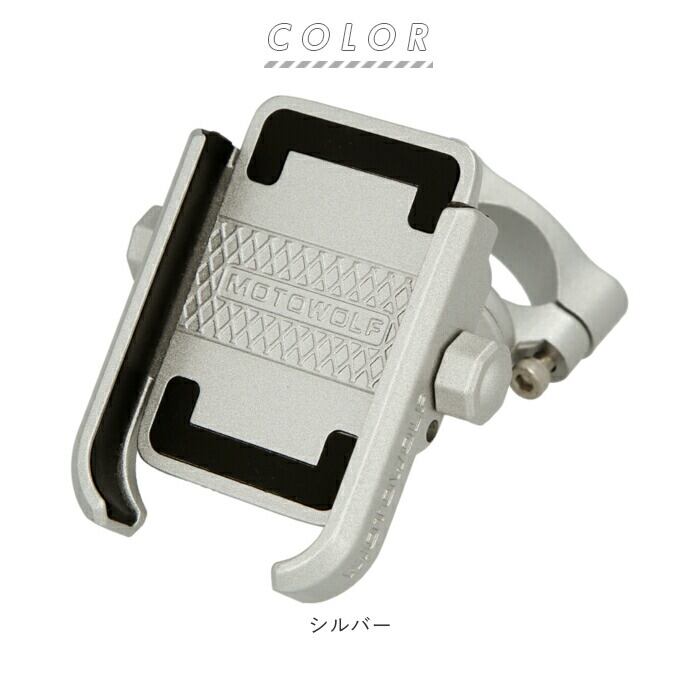 スマホホルダー バイク 通販 バーハンドル オートバイ アルミニウム合金 シルバー ブラック マルチアングル 360° 360度 回転 カメラ 使用可 金属製 重量感 安定 安定性 シンプル デザイン