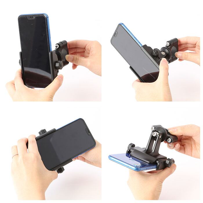 ・横幅約5.8cmから約8.5cm、厚み1.1cmまでの様々なサイズのスマートフォンに対応。両サイドのスクリューノブを回転させるだけで取り付けが簡単。