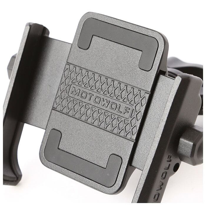 ・バイクのハンドルに取り付けることでスマホをバイク用ナビとして活用できる、アルミ合金製スマホホルダー。