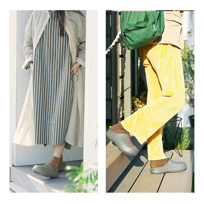 ・シンプルな無地カラー&余計な装飾のない洗練された仕上がり。サッと履いてどこかにお出かけしたくなるような、都会の”つっかけ”。