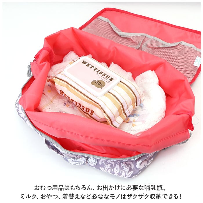 ・おむつ用品はもちろん、お出かけに必要な哺乳瓶、ミルク、おやつ、着替えなど必要なモノはザクザク収納できる!
