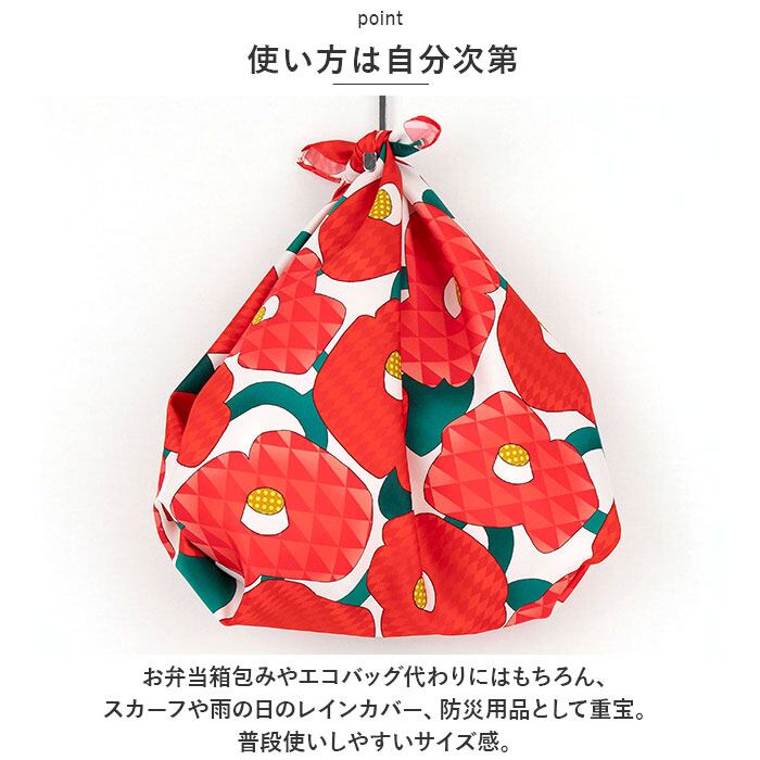 ・お弁当箱包みやエコバッグ代わりにはもちろん!スカーフや雨の日のレインカバー、防災用品として重宝。普段使いしやすいサイズ感。