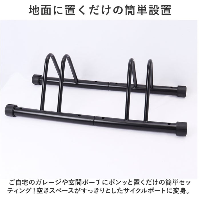 ・車輪をしっかりホールドして、強い風でも倒れない!地面に置くだけでスグに使える「サイクルスタンド(2台用)×2点セット」が新登場。